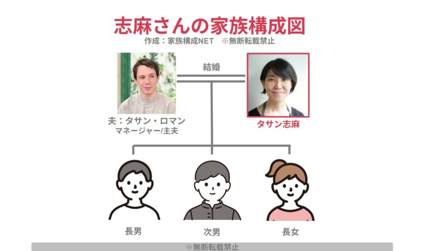 志麻さんの夫はマネージャー兼主夫!子供は息子2人と娘の3人!【家族構成図】