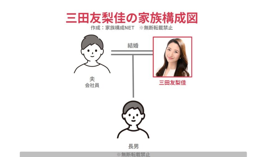 三田友梨佳の夫はエリート会社員?!子供は息子1人!【家族構成図】