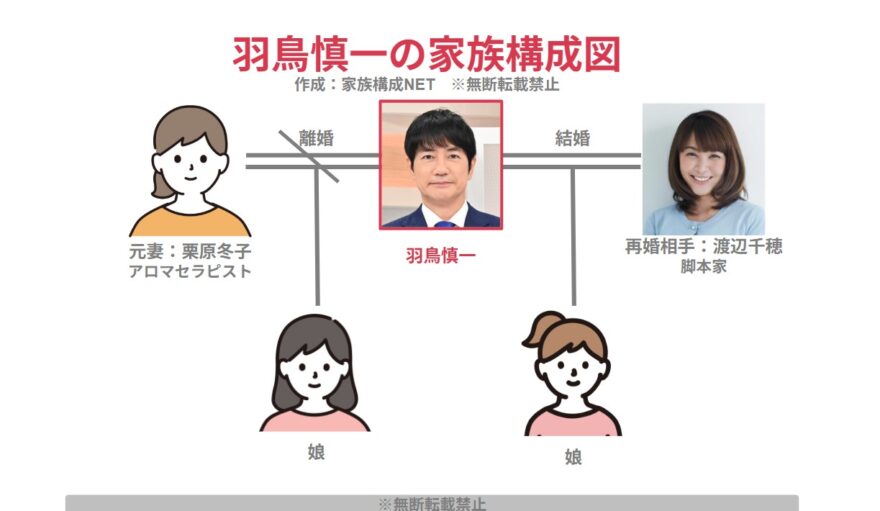 羽鳥慎一の子供は娘2人!再婚相手は脚本家の渡辺千穂!【家族構成図】