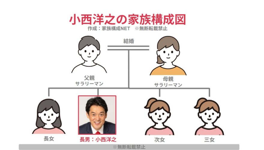 小西洋之の父親はサラリーマン!母親や兄弟についても調査!【家族構成図】