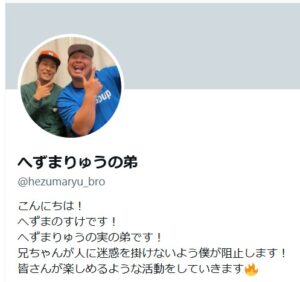 へずまりゅうさんの実の弟と名乗る「へずまのすけ」さんという方がいますが、本当の兄弟かは定かではないようです。