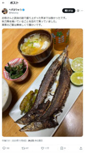 2025年7月31日の自身のXに、母親の手作りの料理を食べたことを明かしています。