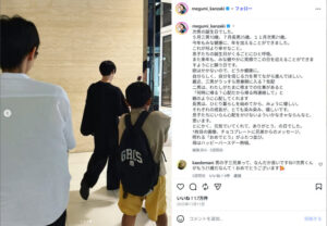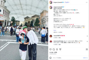 2024年10月1日の自身のInstagramでは、大阪出張に三男も同行してくれたとしており、三男のリクエストで一緒にUSJに行ったことを明かしています。