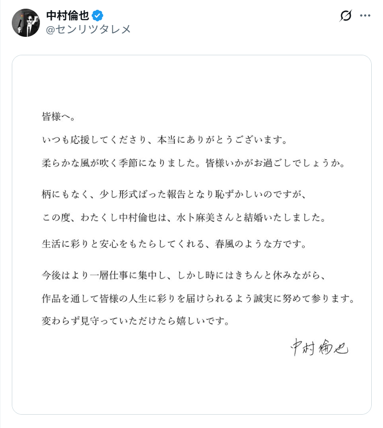 一方、中村さんも仕事のオファーが絶えない人気俳優です。