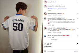 背中には、『HIDEHARU』とローマ字で書かれ、背番号は『50』となっています。