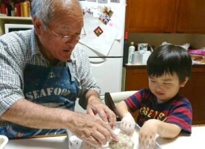 夏休みで帰省してきた孫たちとコロッケづくりをされた時の写真なんだとか!