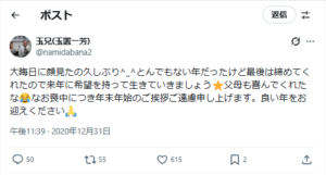 2020年12月31日の兄のXの投稿で、「喪中の為」という表記があることから、この年に亡くなったのではないかと推測しています。