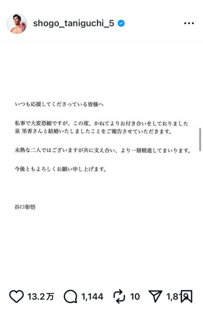 画像引用元:Instagram(@shogo_taniguchi_5)