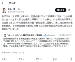 自衛官を辞めたあとは、民間企業で働いていたようです。