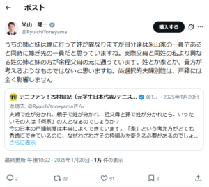 米山隆一さんの姉と妹は、結婚して姓が『米山』から別の姓になっているそうです。
