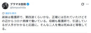 吉田さんは弟の仕事について多くを語っていませんが、人の命を支える仕事をしている弟さんをとても尊敬しているみたいですね。